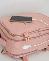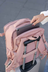 La mochila perfecta para viajar sin complicaciones. De color rosa y con múltiples compartimentos, bolsillo acolchado para portátil y banda para llaves para tenerlo todo organizado. Cómoda, práctica y pensada para acompañarte en vuelos, trabajo o ruta diaria.