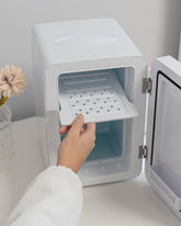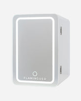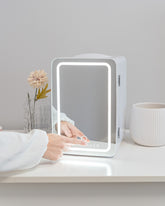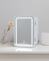 La mini nevera blanca de 6,5 litros con espejo y luz led combina un diseño retro y compacto perfecta para almacenar cosméticos, bebidas y pequeños snacks. Este modelo incluye en la puerta el espejo con luz led de control táctil con tres intensidades de luz diferentes.